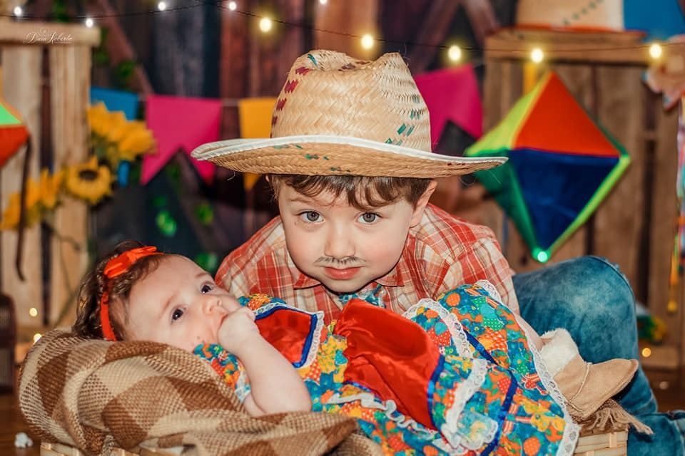 3: Essas fofurinhas são Gustavo e Larissa, filhos da diretora Keli Pontes de Carvalho e do empresário Fabiano Hösel de Carvalho. Que Deus converse em beleza e saúde