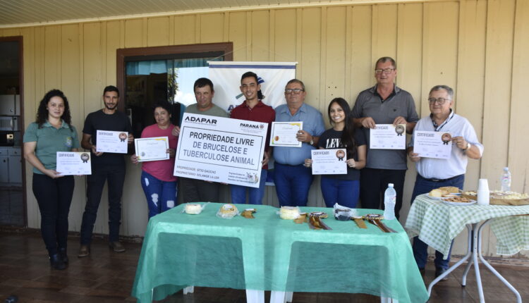 Na quinta-feira (11), autoridades regionais ligadas ao setor agrícola se reuniram em Cantagalo para a entrega de um Certificado de Propriedade Livre de Brucelose e Tuberculose a produtores locais. O evento, que contou com a presença do Chefe regional do Instituto de Desenvolvimento Rural do Paraná (IDR-PR) em Guarapuava, Celso Fernando Dias Doliveira, e do Chefe da Regional da secretaria de Agricultura e do Abastecimento (Seab) em Guarapuava, Arthur Bittencourt Filho, entre outros representantes, destacou a importância da sanidade animal para a competitividade pecuária nacional.