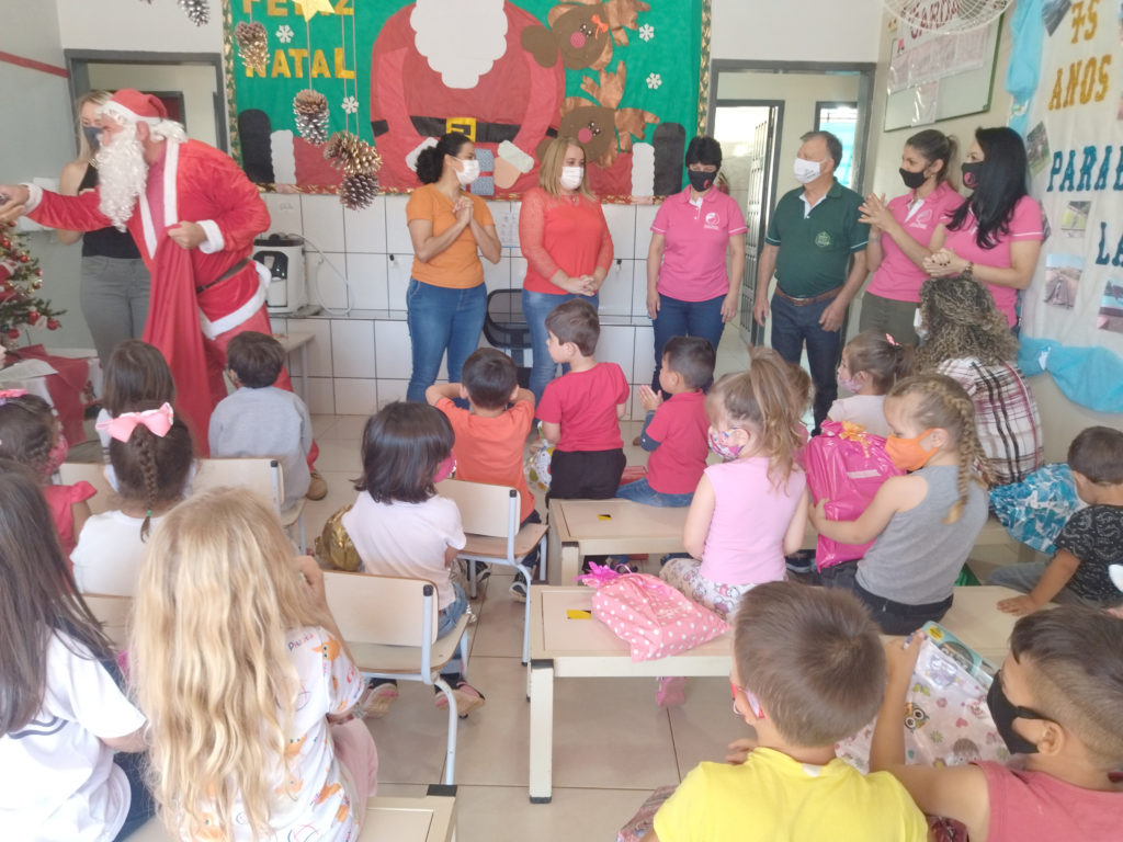 A entrega dos presentes contou também com a presença do diretor vice-presidente, Célio Bechi Dapont, Lindamir Ap Boaria Stunder integrante do Núcleo Feminino Coprossel, além de professores e colaboradores da escola.
