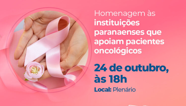 A Assembleia Legislativa, por iniciativa do deputado estadual Alexandre Amaro (Republicanos), membro da Frente Parlamentar em Apoio às Comunidades Terapêuticas Cuidados e Prevenção às Drogas e da Frente Parlamentar Pró-Vida, promove no dia 24 de outubro, quinta-feira, no Plenário Deputado Waldemar Daros, a sessão solene em homenagem às instituições paranaenses que apoiam pacientes oncológicos.