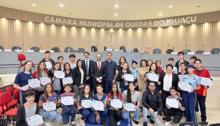 Treze estudantes foram empossados como vereadores mirins na noite da última quinta-feira (5), em uma cerimônia que lotou o Plenário da câmara municipal de Quedas do Iguaçu. Mais de 100 pessoas, incluindo pais de alunos, diretores e professores das escolas participantes, além de autoridades locais, acompanharam o evento.