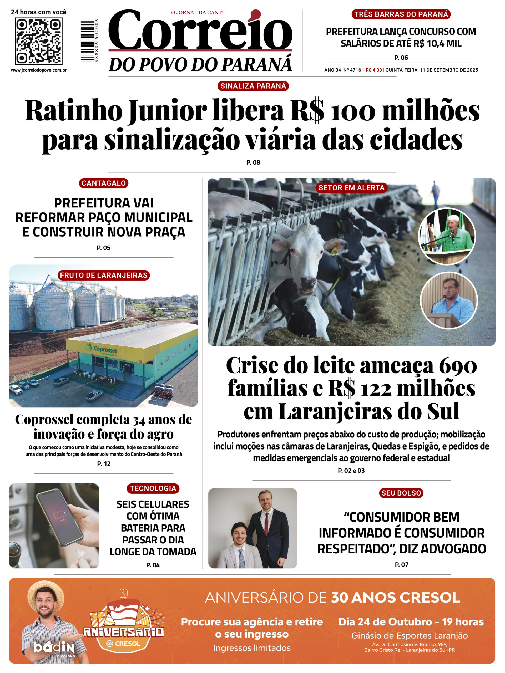 Correio do povo do Paraná - Estamos em Laranjeiras do Sul PR, com todas as Noticias local e região, Também TV Correio Digital.
