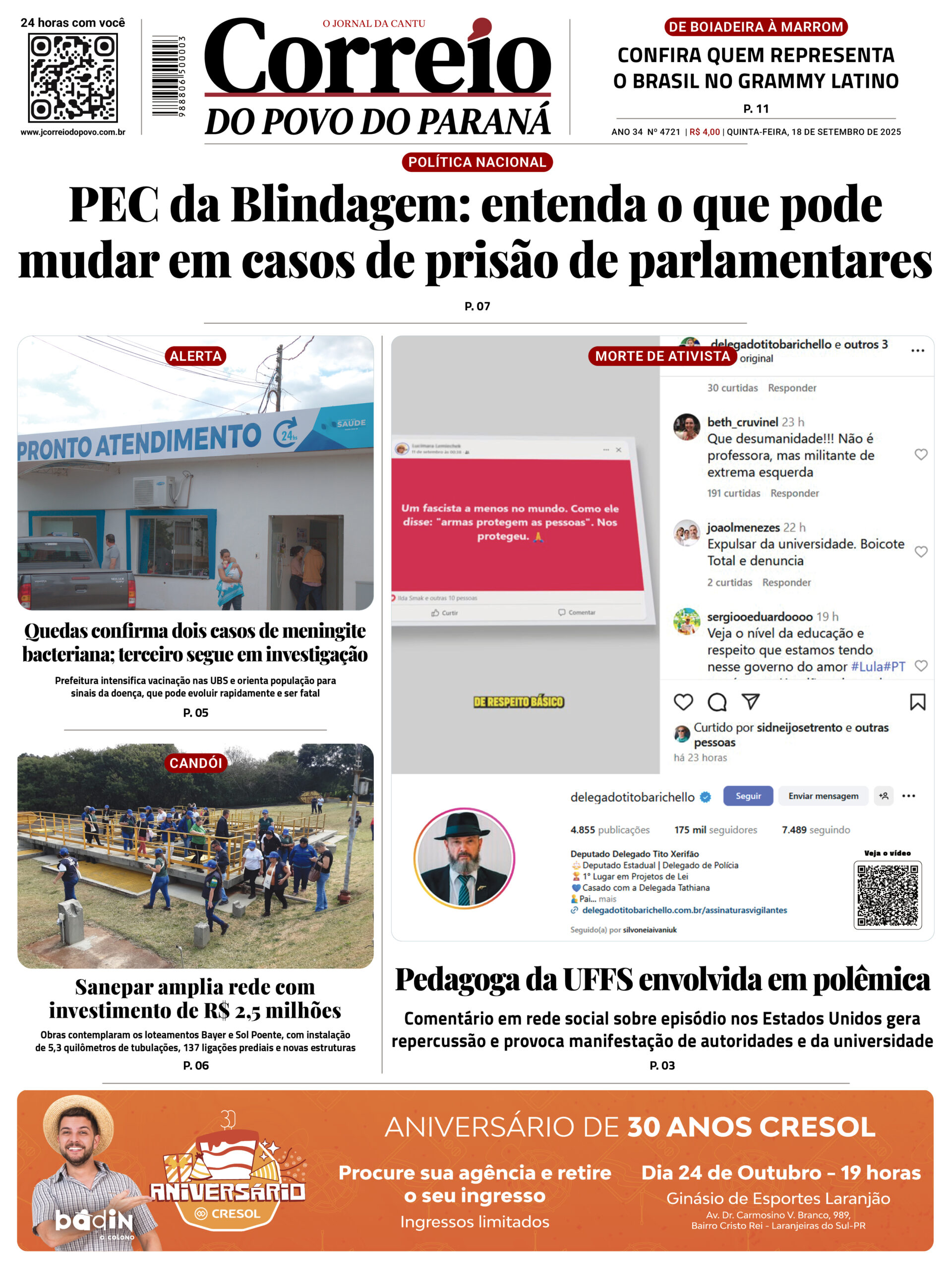 Correio do povo do Paraná - Estamos em Laranjeiras do Sul PR, com todas as Noticias local e região, Também TV Correio Digital.