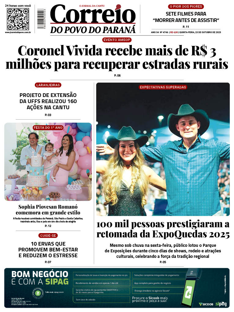 Correio do povo do Paraná Correio do povo do Paraná - Estamos em Laranjeiras do Sul PR, com todas as Noticias local e região, Também TV Correio Digital.