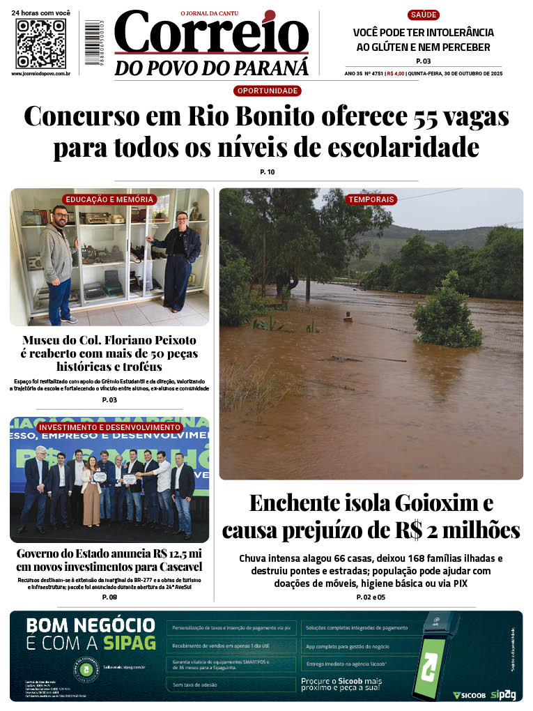 Correio do povo do Paraná Correio do povo do Paraná - Estamos em Laranjeiras do Sul PR, com todas as Noticias local e região, Também TV Correio Digital.