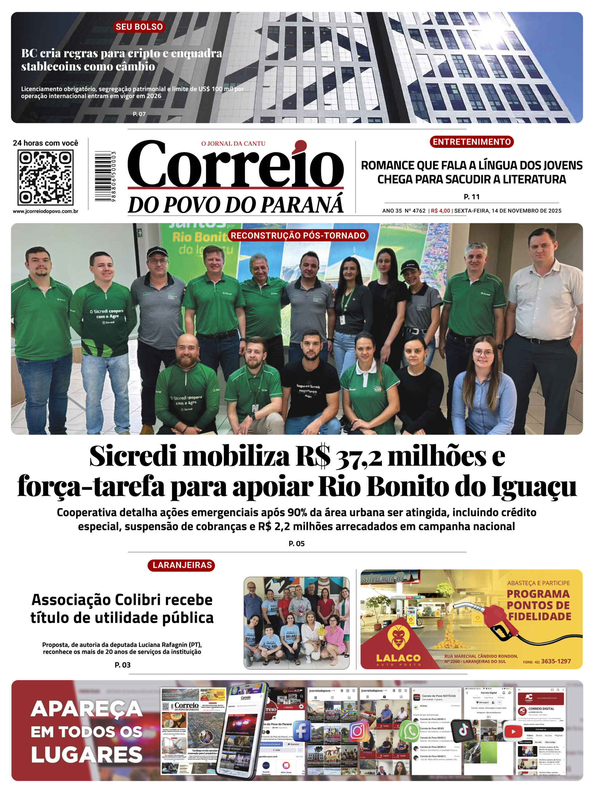 Correio do povo do Paraná Correio do povo do Paraná - Estamos em Laranjeiras do Sul PR, com todas as Noticias local e região, Também TV Correio Digital.