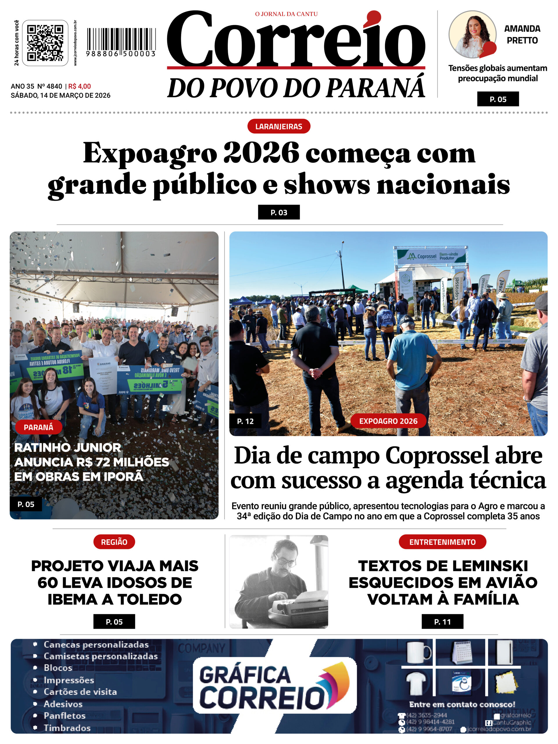 Correio do povo do Paraná - Estamos em Laranjeiras do Sul PR, com todas as Noticias local e região, Também TV Correio Digital.