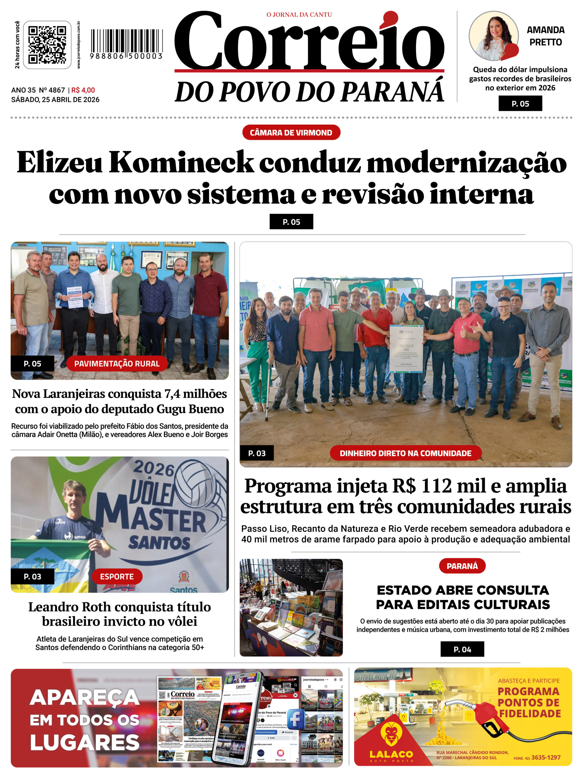 Correio do povo do Paraná - Estamos em Laranjeiras do Sul PR, com todas as Noticias local e região, Também TV Correio Digital.