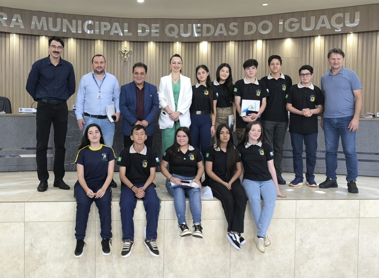 A Câmara de Quedas do Iguaçu recebeu, na última quinta-feira (30), a visita do deputado estadual Batatinha (MDB) durante a sessão da ‘Câmara Mirim’. O encontro, realizado no plenário do Legislativo, contou com a presença de estudantes do Colégio Estadual Cívico-Militar John Kennedy e foi conduzido pela presidente mirim Jhenifer Godois, com a participação de autoridades municipais.
