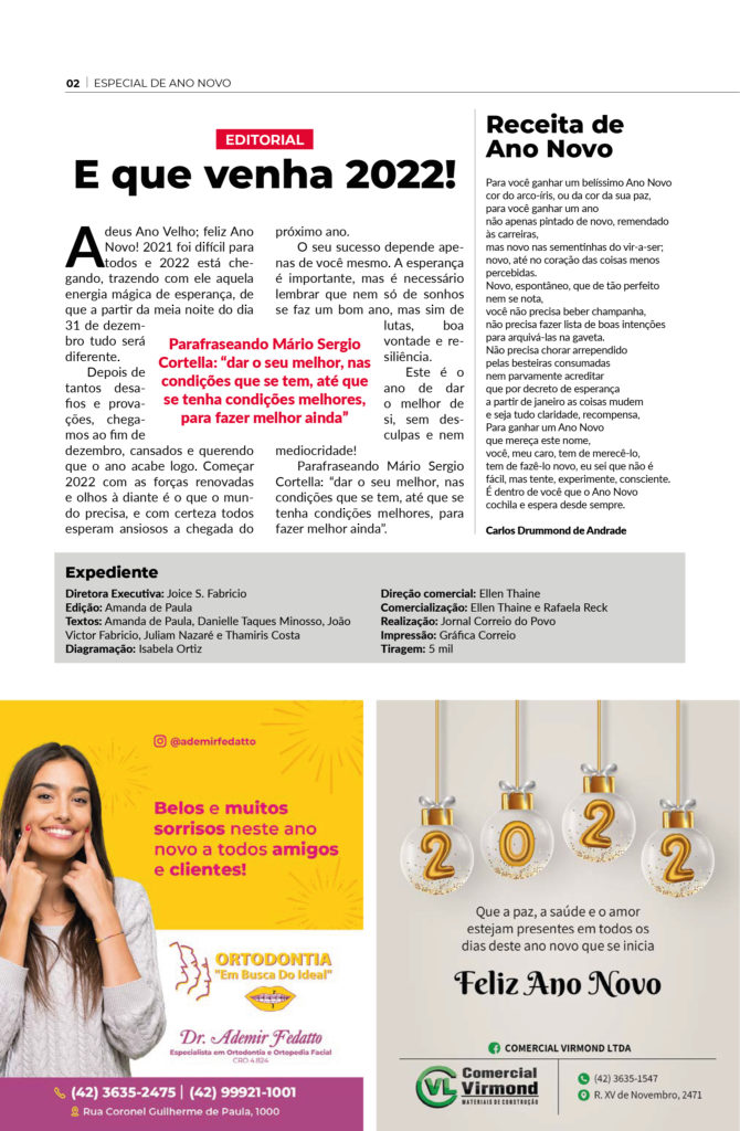 Todo ano o Jornal Correio do Povo lança os especiais de Natal e Ano Novo, e mantendo a tradição lançamos hoje o especial de 2022! Este especial já está disponível nas bancas do Correio do Povo, mas também deixamos aqui a sua versão digital: