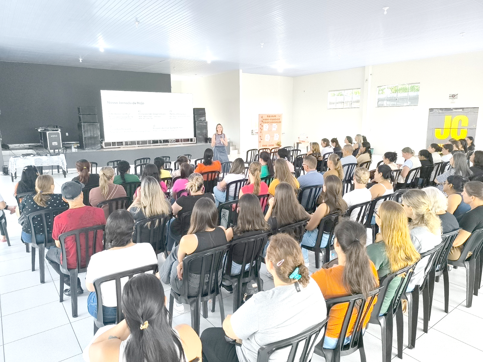 Durante o evento, os educadores participaram de uma formação conduzida pela neuropsicóloga e psicopedagoga Francieli Grolli. A especialista apresentou estratégias práticas voltadas ao cotidiano da sala de aula e ao fortalecimento do processo de ensino-aprendizagem.