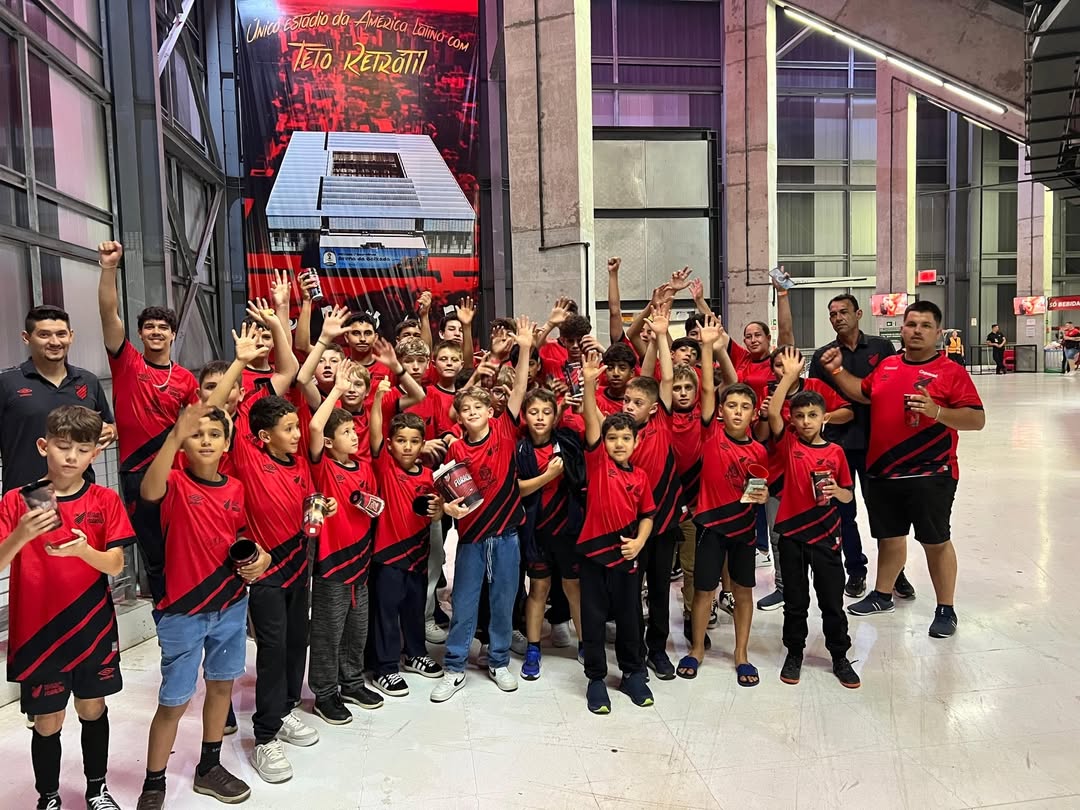 Grupo com 35 crianças da escolinha conheceu o estádio, participou de atividades na capital e assistiu à vitória do Athletico por 4 a 1 pelo Brasileirão
