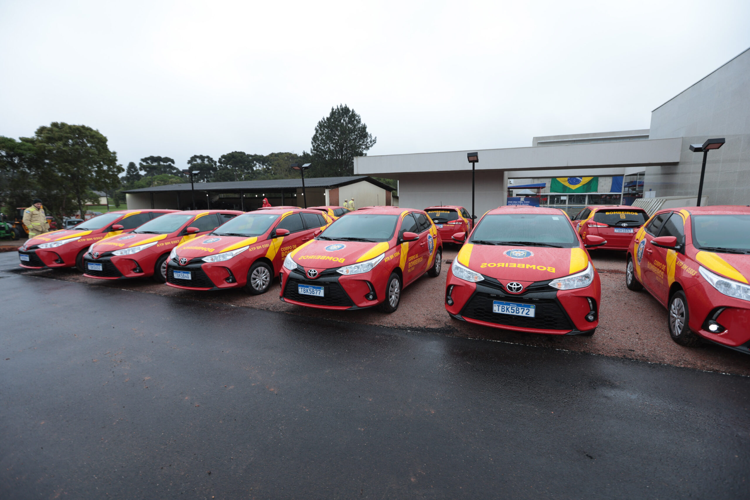 Durante a solenidade, também foram entregues 64 novas viaturas, que irão reforçar as atividades operacionais em todo o Estado. O investimento foi de R$ 17,5 milhões. Entre os veículos estão três Auto Bomba Tanque de Resgate, avaliados em mais de R$ 2 milhões cada e destinados a Curitiba, Ponta Grossa e Maringá; 19 caminhonetes, utilizadas em apoio tático e deslocamentos operacionais; 42 veículos leves Toyota Yaris; e duas viaturas L200 adquiridas com recursos do Fundo Nacional de Segurança Pública (FunSus).