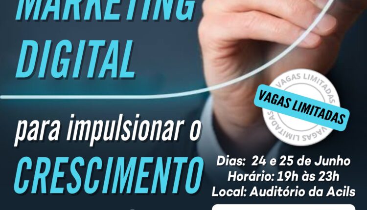 Nos dias 24 e 25 de junho, empresários, empreendedores e profissionais da região terão uma oportunidade de aprimorar conhecimentos e resultados no ambiente digital. A Associação Comercial e Empresarial de Laranjeiras do Sul (Acils), em parceria com o Serviço Brasileiro de Apoio às Micro e Pequenas Empresas (Sebrae), promove o curso “Estratégias de Marketing Digital para impulsionar o crescimento do seu negócio”, com encontros presenciais das 19 às 23 horas, no auditório da ACILS.