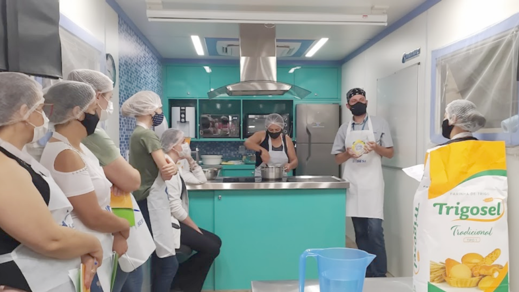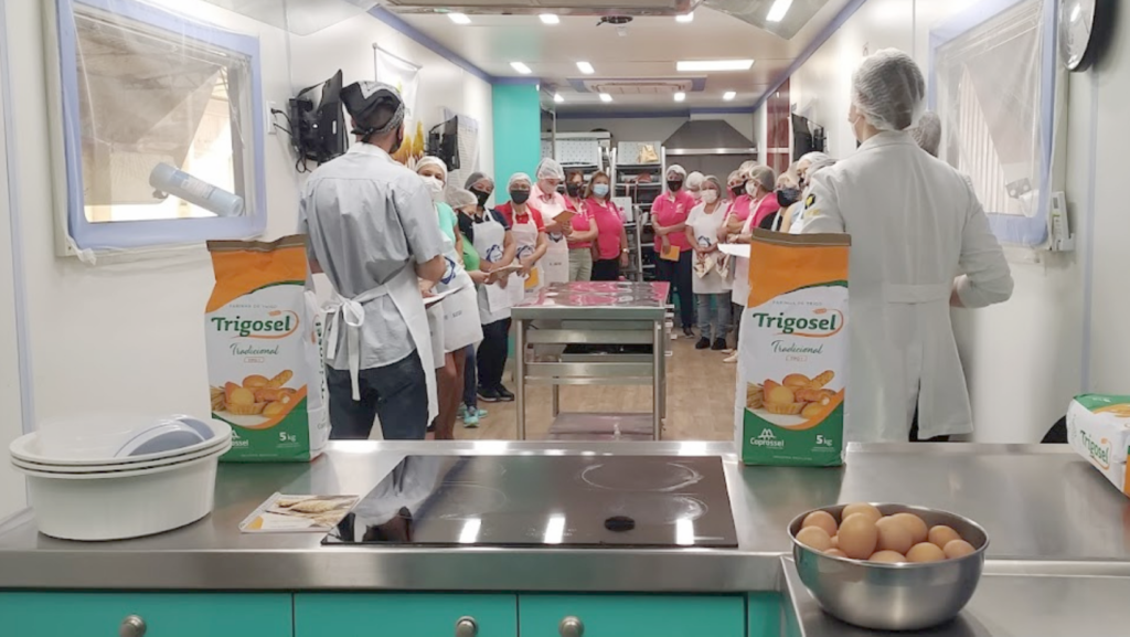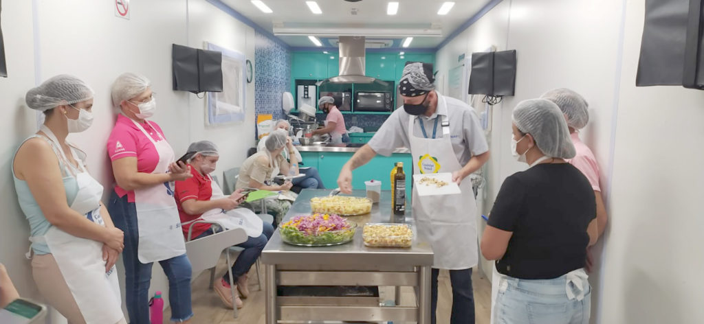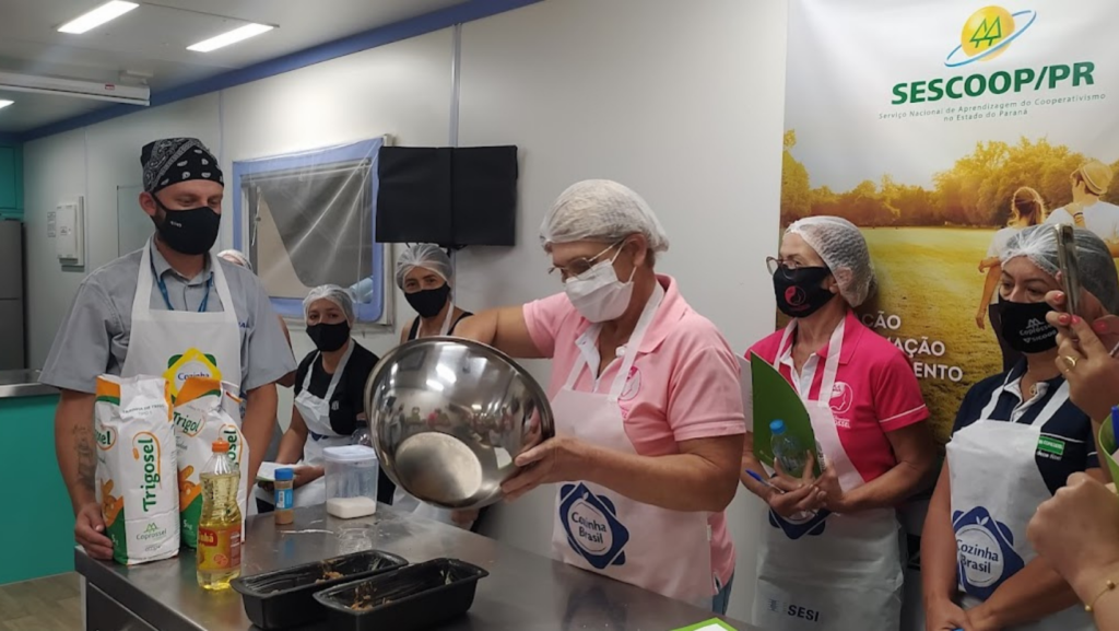 A equipe da Cozinha Brasil esteve durante três dias na sede da Coprossel. As capacitações foram realizadas na Unidade Móvel do Programa que é equipada para as oficinas e ficou no pátio da sede da cooperativa em Laranjeiras do Sul. Foram três dias de curso, divididos em três temas da culinária, nutrição e saúde. As participantes realizaram a inscrição previamente e o número de vagas foi reduzido para manter todas as medidas de prevenção a saúde aplicada no evento.