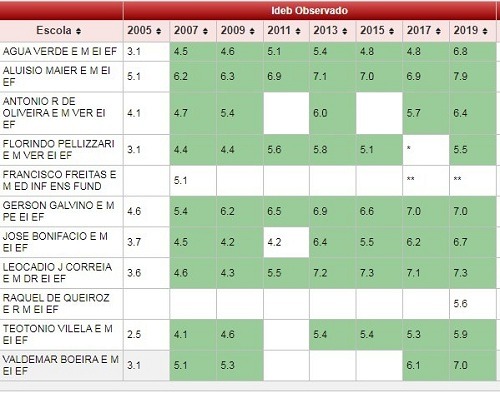 Por outro lado a Raquel de Queiroz e a Florindo Pellizzari, do Passo Liso e do Monte Castelo, respectivamente, não tiveram a nota publicada em 2017, mas conheceram seus desempenhos em 2019. Foram 5,6 e 5,5 pontos para cada, na sequência.