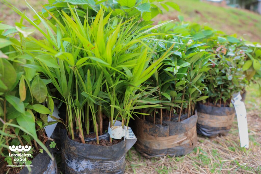 São mudas de Ipê amarelo, cerejeira, vacum, ingá, aroeira vermelha, pitanga, guabiroba, cedro rosa, camboatá, angico vermelho, canafístula e ipê roxo.