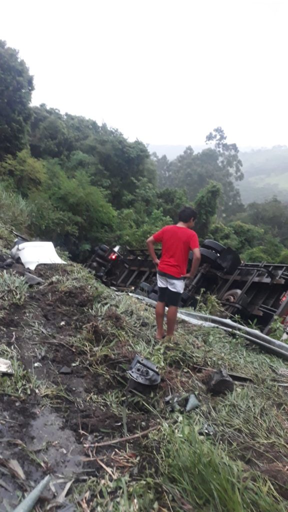 O condutor do caminhão já foi encaminhado para o pronto socorro em Laranjeiras do Sul.