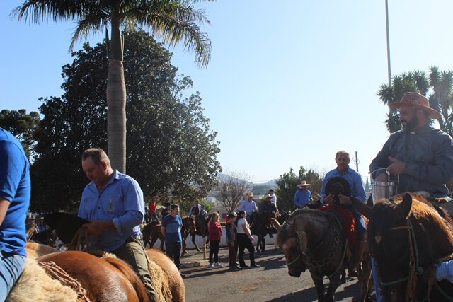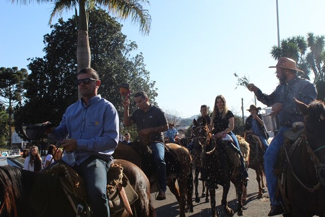 A cavalgada começou na manhã de segunda-feira (25), no interior do município, e chegou na manhã terça-feira, às 9h45 e foi recepcionada na Matriz pela imagem de Sant’Ana.