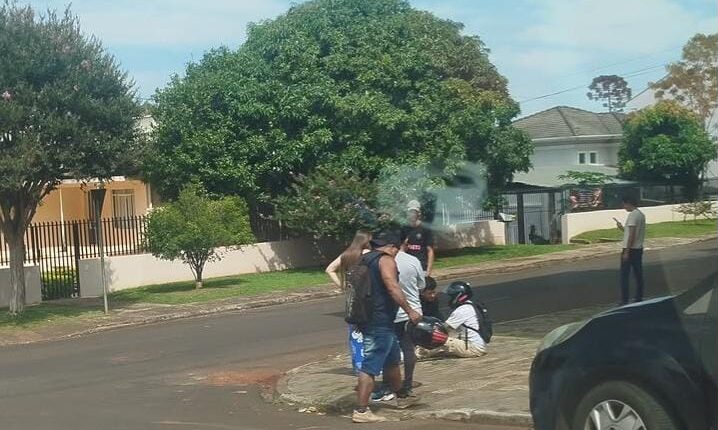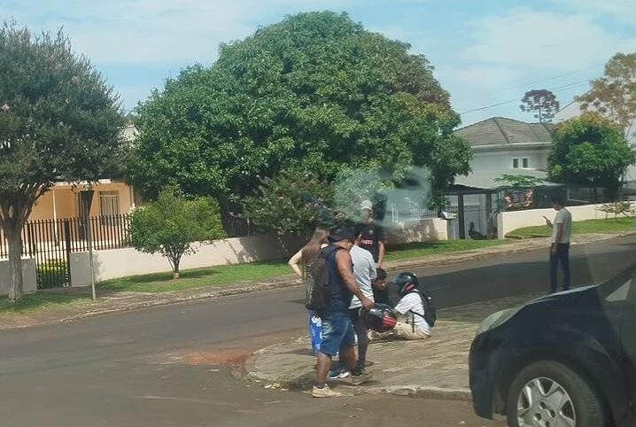 Uma colisão entre uma motocicleta e um carro foi registrada na manhã desta sexta-feira no cruzamento das ruas Manoel Ribas e Coronel Guilherme de Paula, no centro de Laranjeiras do Sul, próximo à esquina do Jornal Correio do Povo. A moto transportava duas pessoas.