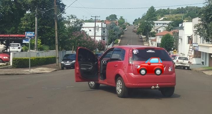 O veículo ficou parado no cruzamento logo após o impacto, chamando a atenção de quem passava pela região. O local é um dos pontos de ligação entre vias movimentadas da área central da cidade.
