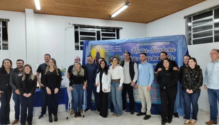 A comunidade do Santuário de Nossa Senhora Aparecida de Laranjeiras realiza, em outubro, a quadragésima edição de sua festa. O lançamento oficial ocorreu nesta quarta-feira (27) e apresentou a programação religiosa e social que marcará o evento, comandado pelo presidente da festa, Cleonir Bortoluzzi (Tchuco), o vice, Paulo Gava e o responsável pela rifa, Wanderlei Tasca.