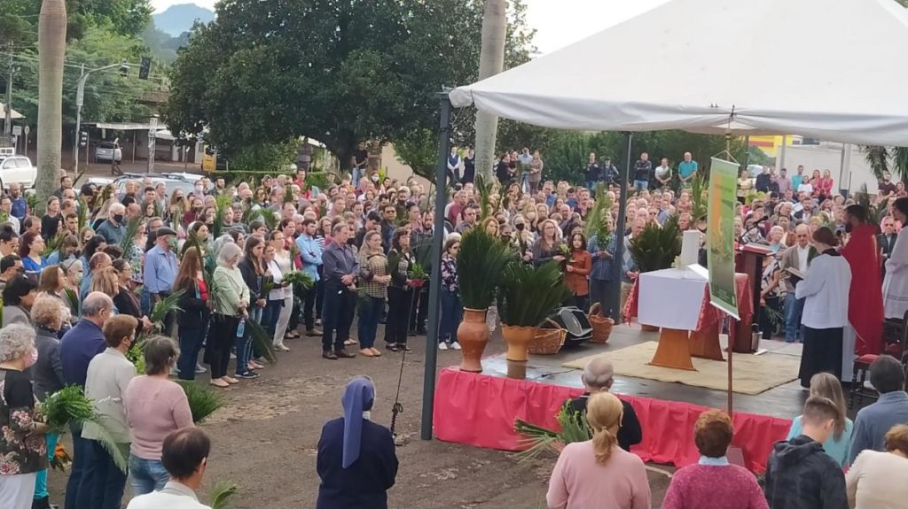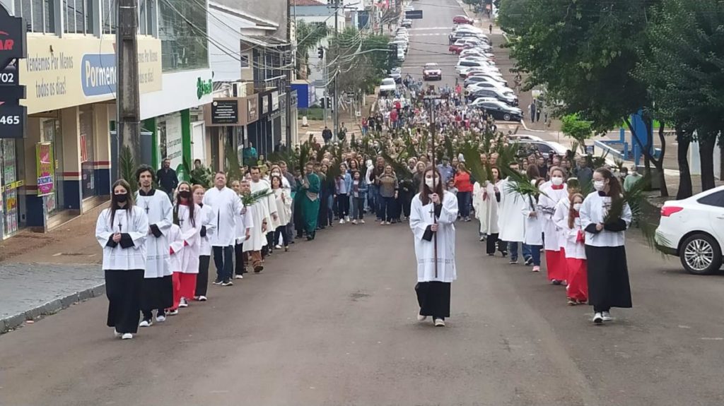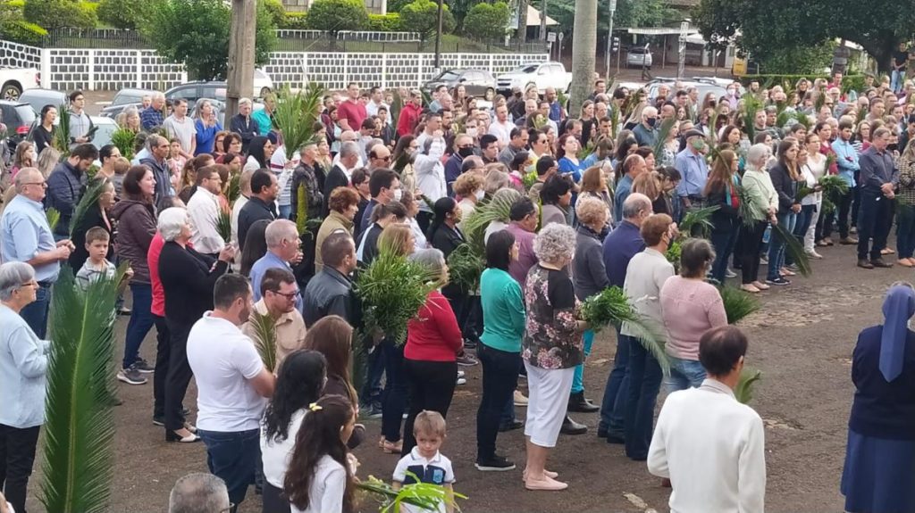 Celebração do Domingo de Ramos deu início à semana santa em Laranjeiras do Sul neste domingo (10). A Santa Missa começou na praça José Nogueira do Amaral, com a Benção dos Ramos, e em procissão seguiram até a praça da Igreja Matriz, onde aconteceu a Missa Campal presidida pelo padre Sebastião Gulart.