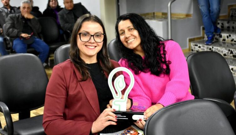 Entre os momentos de maior destaque esteve a entrega da Moção de Aplausos e Reconhecimento às professoras Eronice Ribeiro Leandro e Eliane Faccin Melo, vencedoras de um concurso nacional na categoria sustentabilidade. O projeto premiado, intitulado “Transformando plástico em vida: hortas e pufes para um futuro sustentável”, foi reconhecido pelo impacto educacional e ambiental que promove nas escolas.