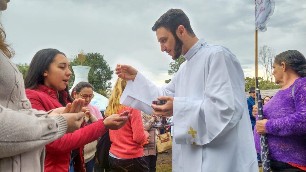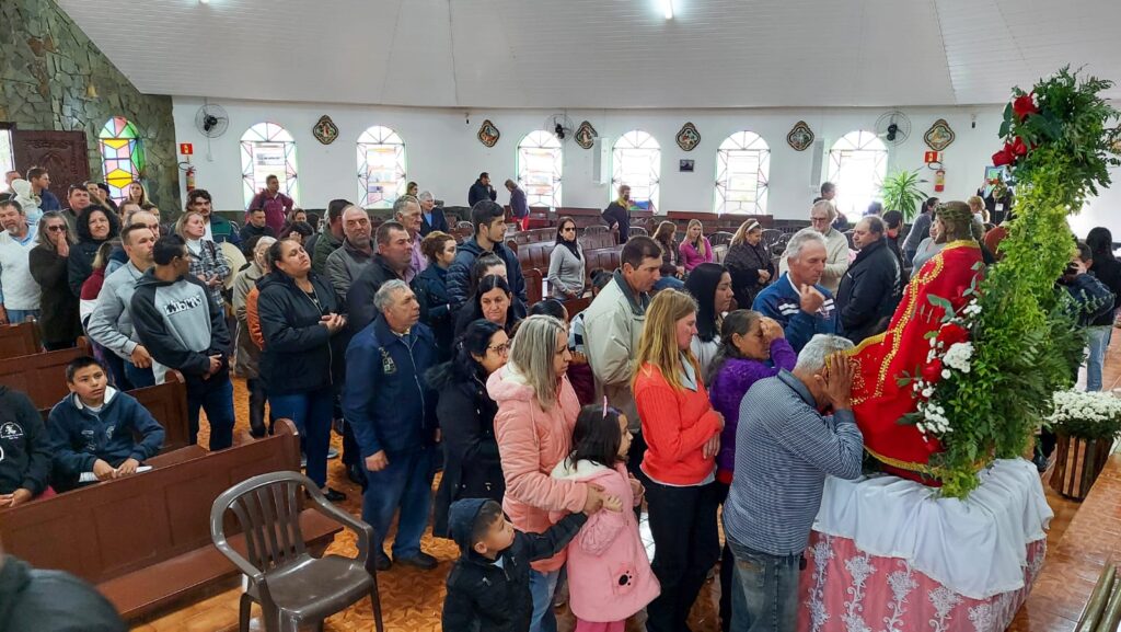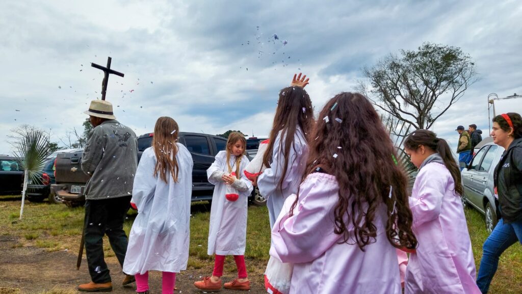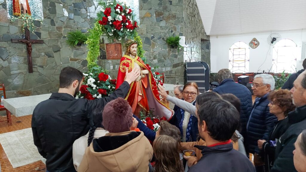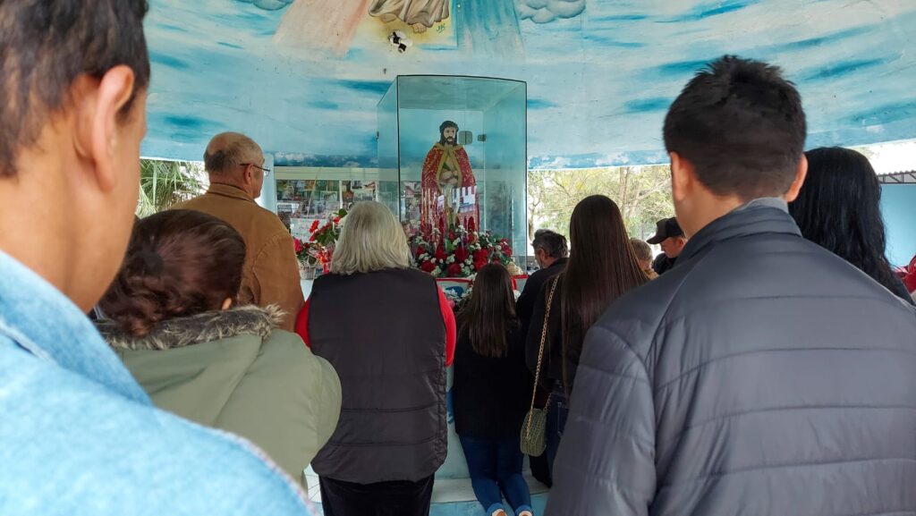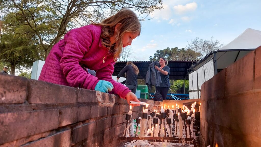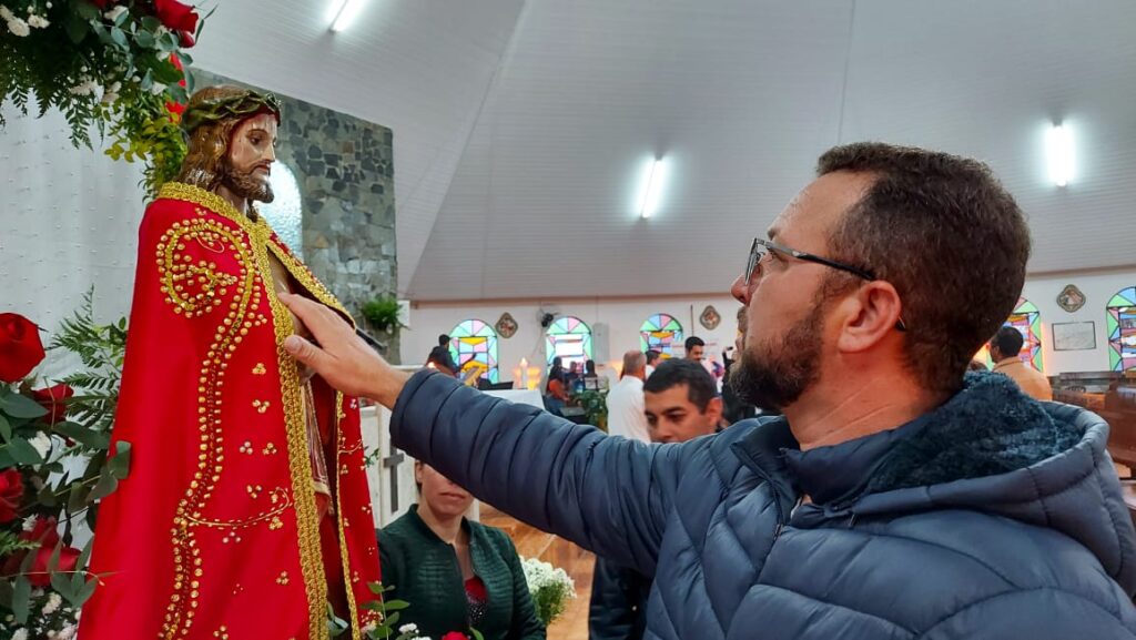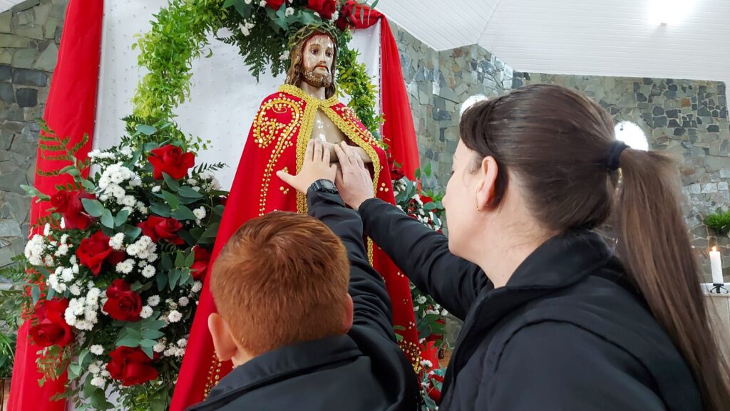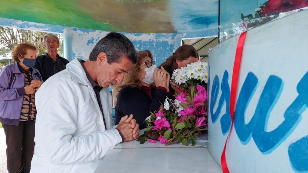 “Estamos aqui agradecendo as diversas graças que recebemos. Meu marido fez cirurgia na coluna e fez o pedido para que saísse bem da cirurgia e realizasse a romaria a pé e descalço como está aí. Nossa pequena Julia Sofia estava na UTI e fizemos a promessa também que traríamos ela hoje no Bom Jesus e aqui estamos!” – Foto: José Betelli ![]()