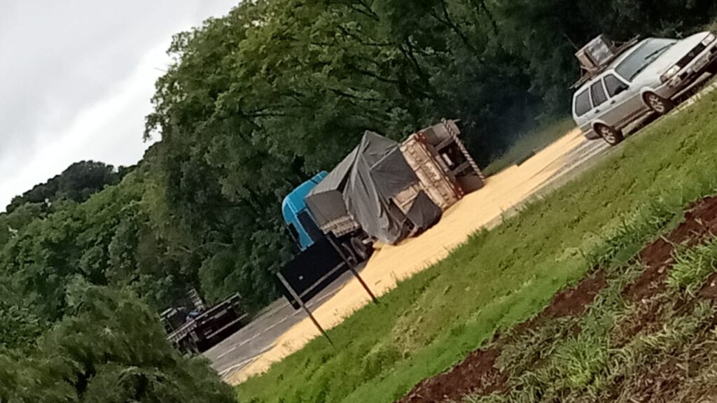 Conforme a PRF, o caminhoneiro relatou que tentou desviar para não bater no carro, após a colisão uma das carrocerias do bitrem tombou e espalhou a carga na pista. Na carreta bitrem viajavam o condutor e sua esposa, que não ficaram feridos.