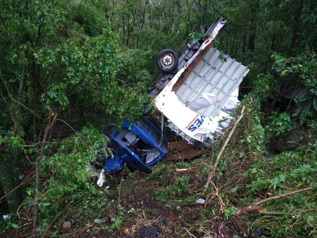 A PRF informou que chovia na hora do acidente e que o ônibus envolvido é da Viação Catarinense e tinha como destino Foz do Iguaçu.