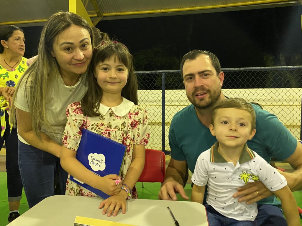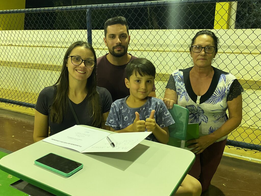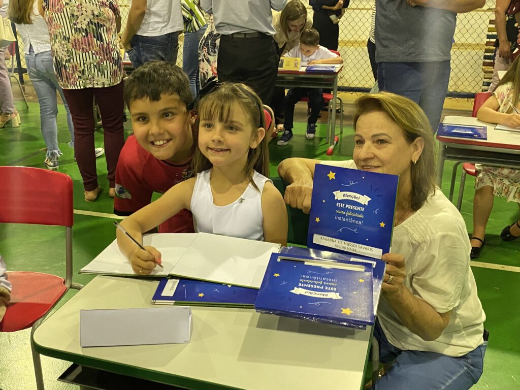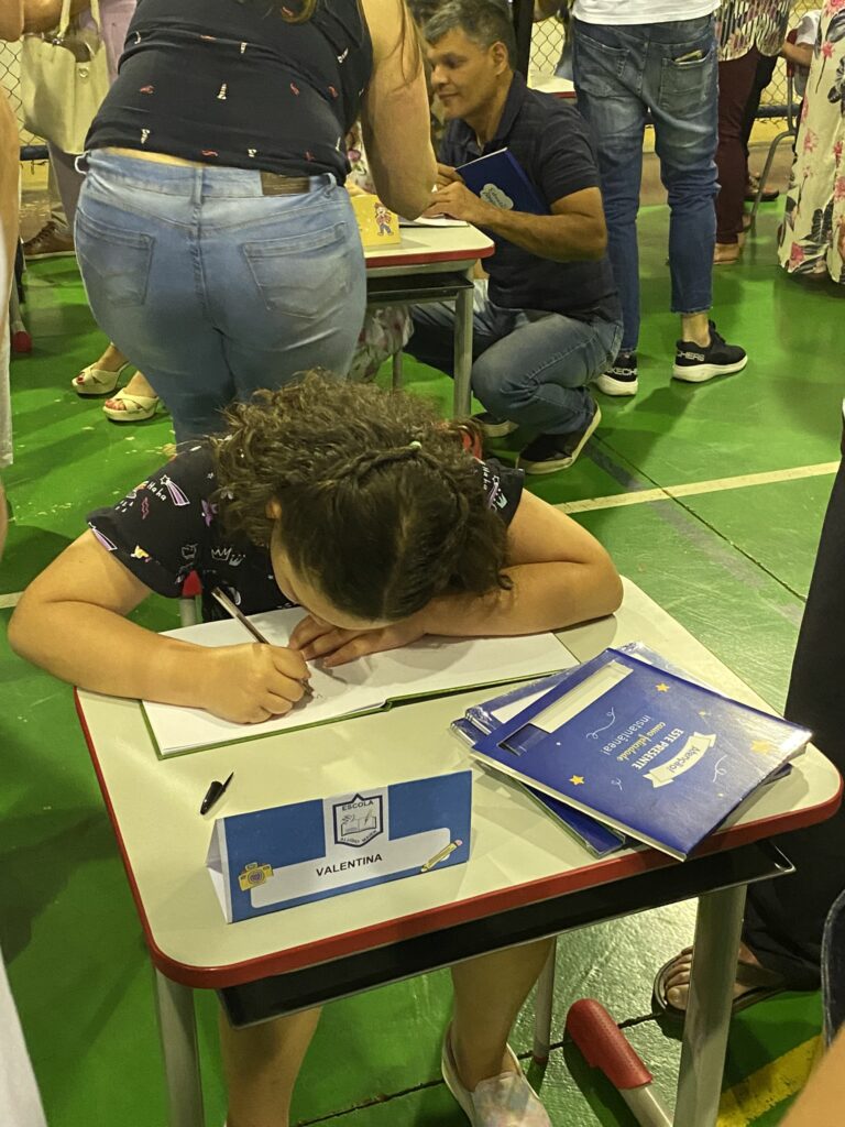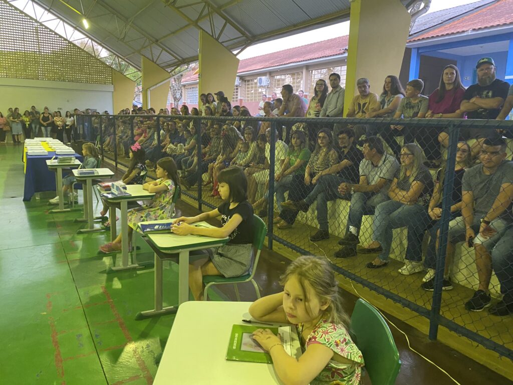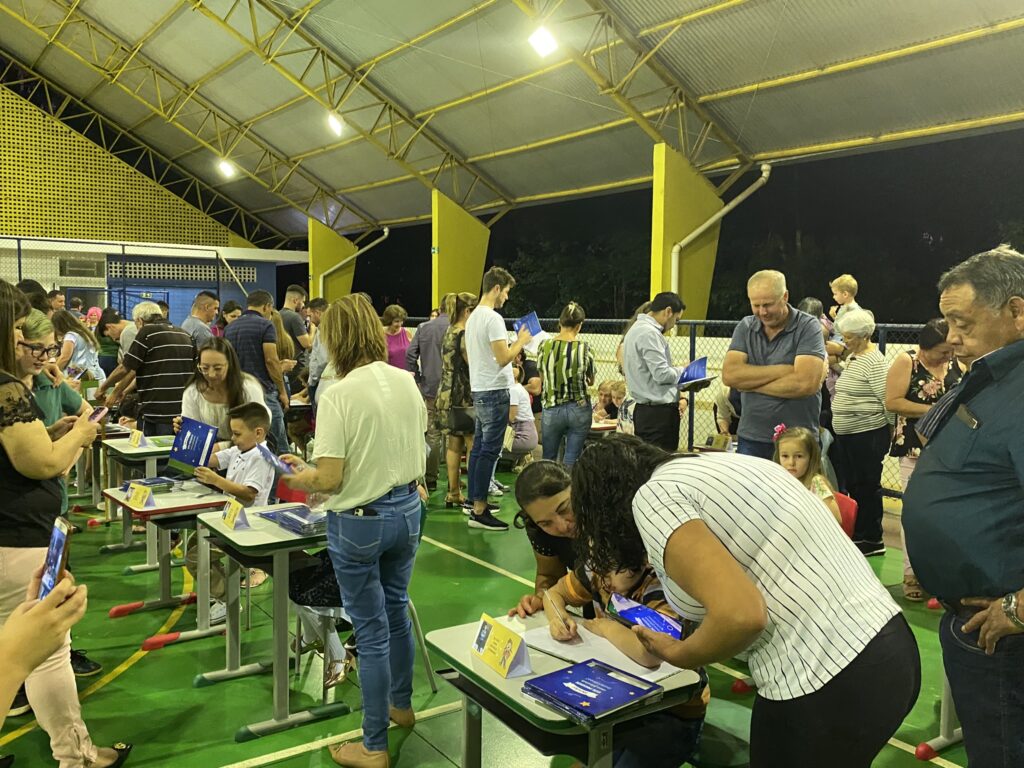 O evento de entrega ocorreu na quadra esportiva da escola e teve participação em peso dos alunos e seus familiares que prestigiaram a realização das assinaturas das crianças.