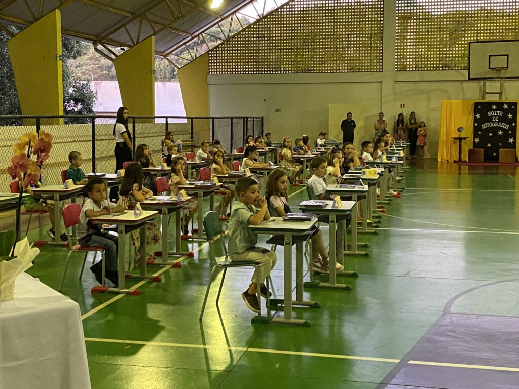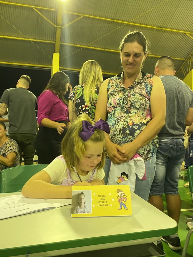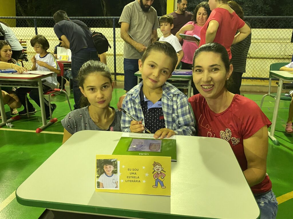 A Noite de Autógrafos foi para entregar os 49 livros de autoria própria com histórias feitas pelos alunos da escola. “Eles criaram as historinhas em casa com seus pais, ou aqui na escola mesmo”. Após isso com a ajuda de um aplicativo a professora enviou os arquivos dos livros de cada aluno que foram impressos e chegaram semana passada.