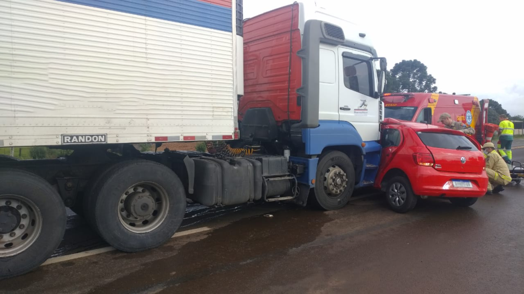 A Polícia Rodoviária Federal atendeu o acidente do tipo colisão transversal que envolveu um carro VE/Gol e um caminhão Mercedes Benz. De acordo com a PRF e a dinâmica do acidente, o motorista do Gol, tentou atravessar a BR 277 quando foi atingido pela carreta que não teve tempo para evitar a colisão.