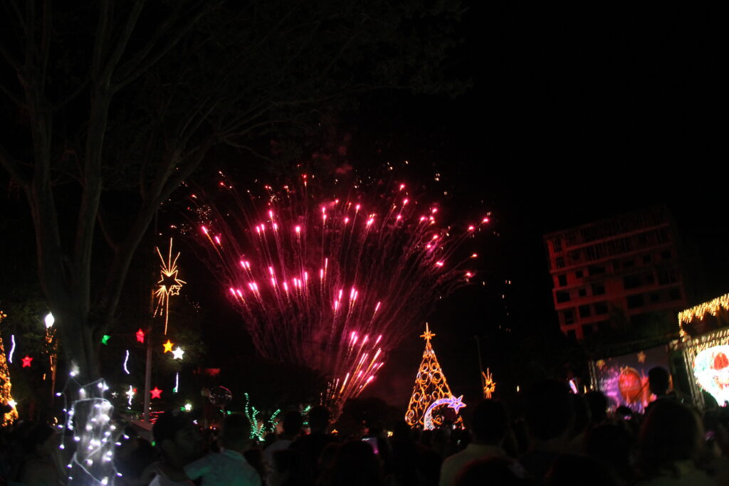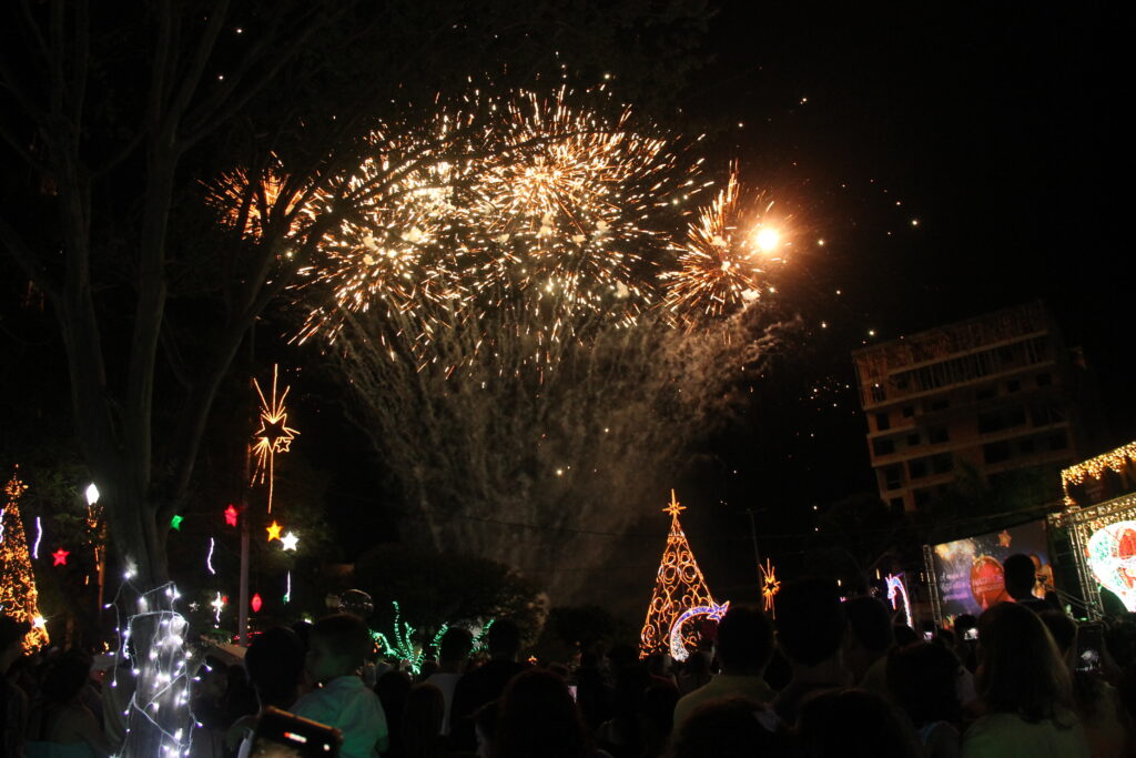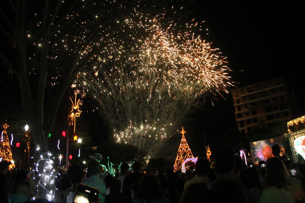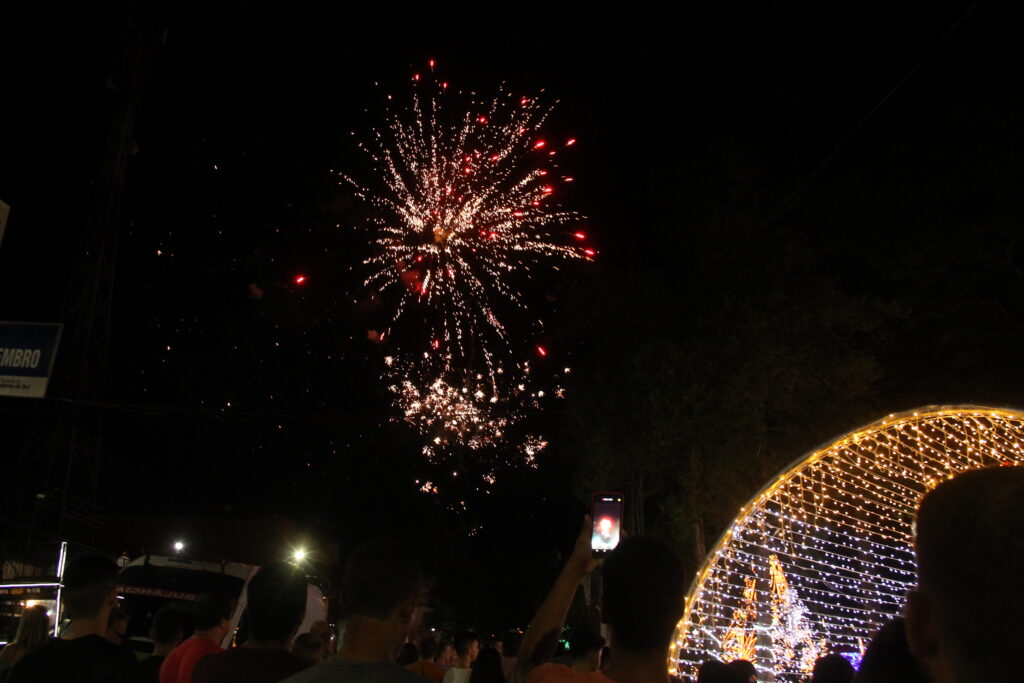 Mais um ano virou e Laranjeiras do Sul começa novamente a temporada de festividades. Nesta quarta-feira (7), a prefeitura acendeu as luzes natalinas e recebeu o Papai Noel na praça José Nogueira do Amaral com um lindo show pirotécnico. Com boa participação dos cidadãos, após o acender, ocorreu a apresentação da peça teatral “Missão Presente” da Companhia Sonhos e Magia de Ponta Grossa.