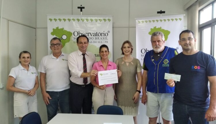Observatório Social doa mais de R$ 4 mil ao Serviço de Obras Sociais de Laranjeiras