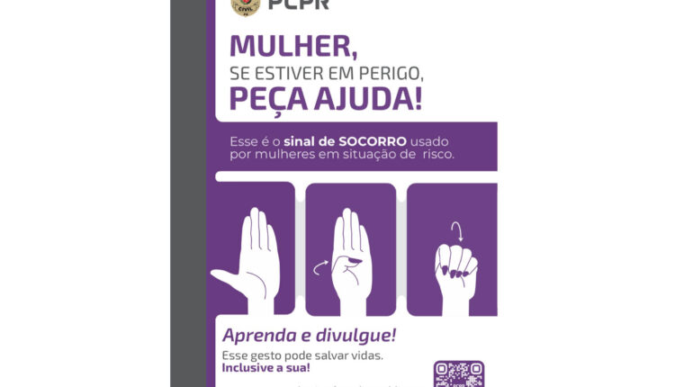 O sinal é conhecido mundialmente e, após a abordagem, a pessoa que prestou ajuda pode telefonar para as forças de segurança. A PCPR vai entregar folders com o conteúdo durante ações realizadas no mês de agosto, além de distribuir em locais públicos.