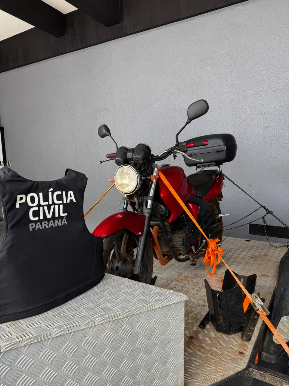 Pela manhã, a equipe de investigação de furtos e roubos localizou uma motocicleta Yamaha Fazer abandonada em uma estrada vicinal na zona rural de Porto Barreiro. O veículo havia sido subtraído recentemente.