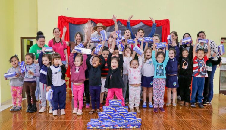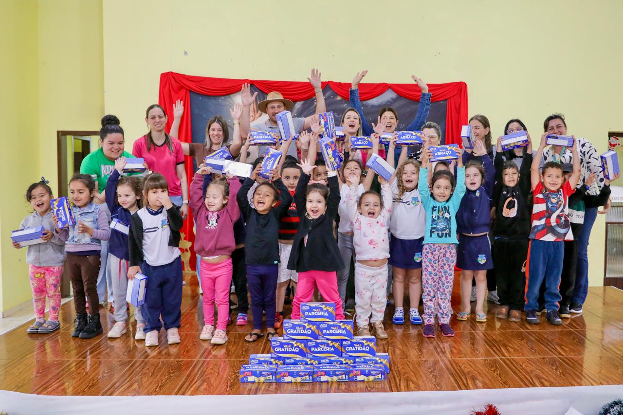 A prefeitura realizou, nesta semana, a entrega de chocolates aos alunos da rede municipal de ensino, dos centros municipais de educação infantil e da Associação de Pais e Amigos dos Excepcionais, a APAE. A ação marcou as atividades de encerramento do ano letivo e teve como objetivo celebrar o período natalino com as crianças atendidas pelo sistema municipal de educação.