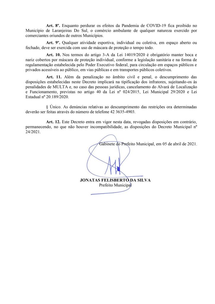 Confira a seguir o decreto e o vídeo que Berto Silva, prefeito do município, publicou em suas redes sociais