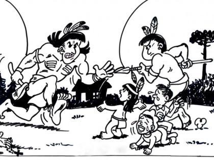 Com o bom relacionamento, uma indígena doou um casal de crianças para o homem cuidar. Mas o menino era muito malvado. Jogava comida para os porcos e quando eles vinham, cortava eles com facão. Então o homem bateu no indiozinho, que fugiu e foi para o toldo, onde moravam os indígenas em Boa Vista. Lá, contou o ocorrido para o chefe. No outro dia veio o toldo inteiro. Cada um com uma ramagem na frente. Eles estavam almoçando e viram os indígenas chegando, por isso trancaram a casa, relembra.