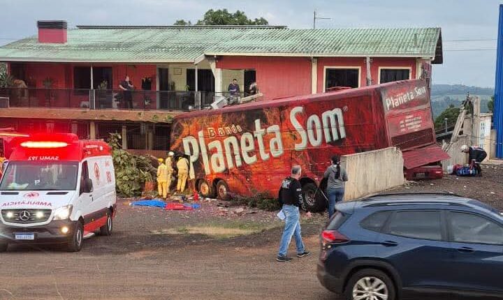 Um grave acidente registrado na noite do último sábado (15), se estendeu para a madrugada de domingo mobilizou equipes de segurança e resgate na região de Pato Branco. A ocorrência envolveu um ônibus da Banda Planeta Som, de São Lourenço do Oeste (SC), e uma caminhonete. A colisão resultou em uma morte confirmada e deixou diversos feridos, exigindo uma operação prolongada de atendimento e remoção.