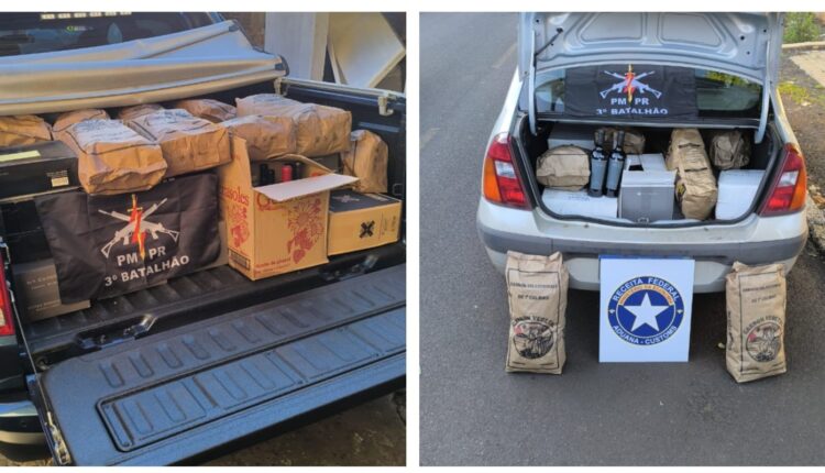 Uma operação conjunta entre a equipe ROTAM da Polícia Militar e agentes da Receita Federal resultou na apreensão de uma grande quantidade de vinhos e carvão estrangeiros, além de armamento e munições, em Pato Branco. A ação ocorreu no bairro Planalto, após monitoramento de um veículo suspeito de envolvimento em descaminho.