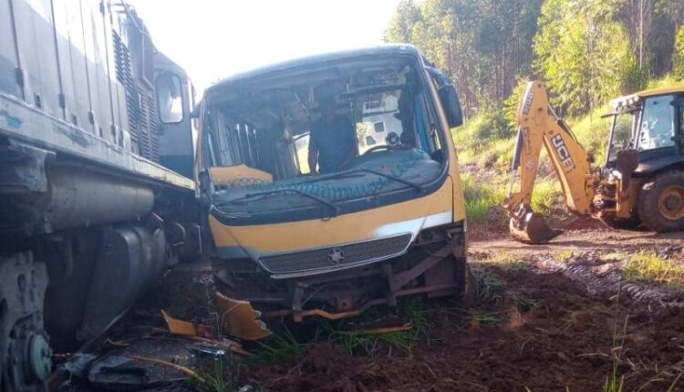 Nesta manhã (19), um acidente envolveu um ônibus escolar e um trem na localidade de Cocho Grande, interior de Nova Laranjeiras.