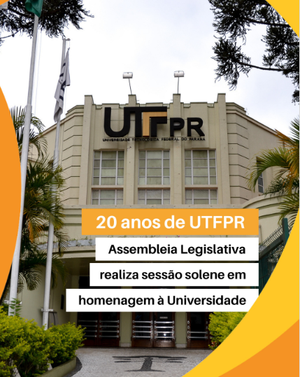 A Assembleia Legislativa do Paraná (ALEP) realiza, na próxima segunda-feira (24), às 9 horas, sessão solene em comemoração aos 20 anos da criação da Universidade Tecnológica Federal do Paraná (Utfpr). Proposta pelo deputado estadual Goura (PDT), a homenagem acontece no Auditório Legislativo e terá transmissão ao vivo pelas redes sociais da Alep.