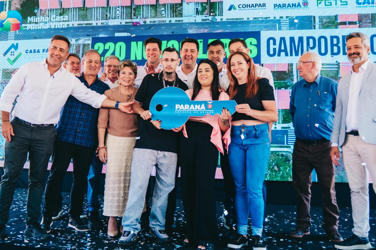A entrega ocorreu com a presença do secretário das Cidades, Guto Silva, e do governador Carlos Massa Ratinho Junior. O Estado destinou R$ 4,38 milhões para subsidiar a entrada de famílias com renda de até quatro salários mínimos.