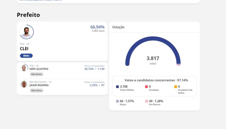 O candidato conquistou 66,94% dos votos válidos, totalizando 2.482 sufrágios