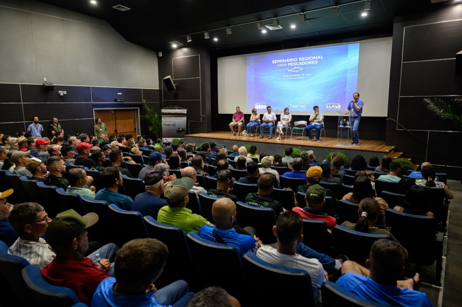 Mais de 200 pescadores artesanais da região do reservatório da Itaipu participaram, na manhã da última sexta-feira (20), do ‘Seminário Regional para Pescadores’, no Centro de Recepção de Visitantes (CRV) da margem brasileira da usina, em Foz do Iguaçu (PR). O encontro teve a participação de instituições parceiras, como o ministério da Pesca, o ‘Instituto Água e Terra’, a Unioeste, o ‘Instituto Neotropical de Pesquisas Ambientais’ (INEO) e o Itaipu Parquetec.