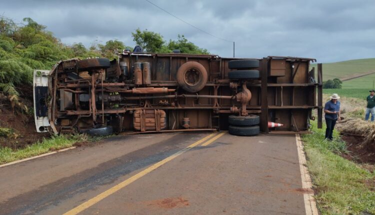 Por volta das 14h50 de hoje (21), um caminhão de ração tombou na PR-565 em Porto Barreiro, no KM-13. A princípio, não houve vítimas, mas o trânsito está interditado nos dois sentidos.