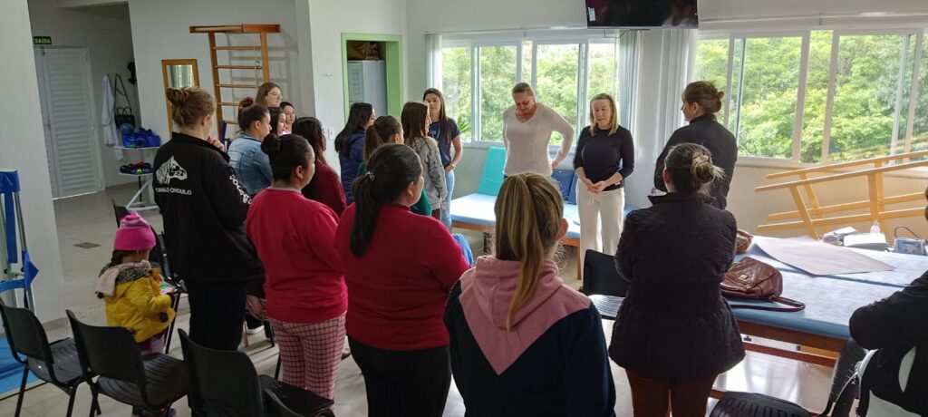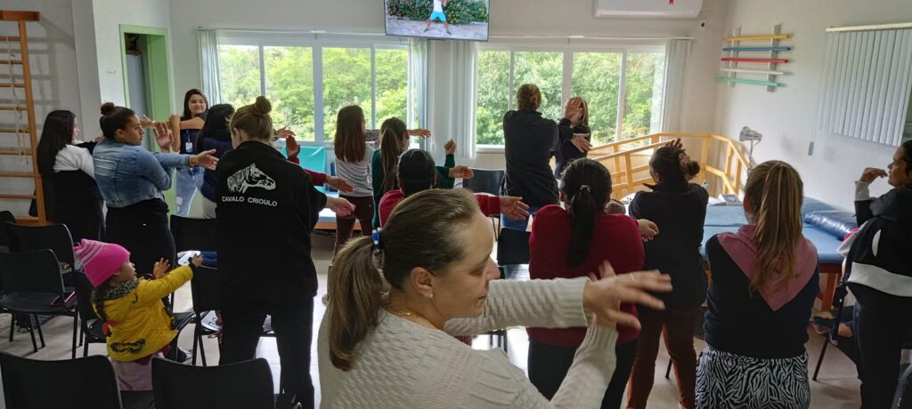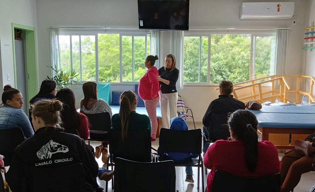 A equipe do Núcleo de Apoio à Saúde da Família (Nasf) e a coordenação da Atenção Primária de Saúde de Virmond realizaram na última semana uma palestra descontraída e humanizada com as gestantes do município. Na ocasião, a fisioterapeuta gestacional Noeli falou sobre o cuidado com a saúde da gestante, prevenção e redução de dores, fortalecimento pélvico e redução de edema.